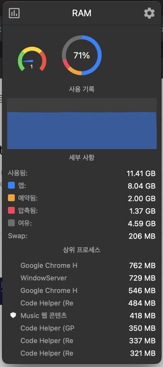 메모리, CPU 등의 하드웨어 사용량을 상태바에 표시해준다.