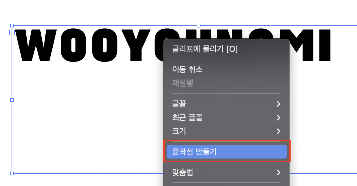 텍스트를 우클릭하고, 윤곽선을 만들어 줍니다.