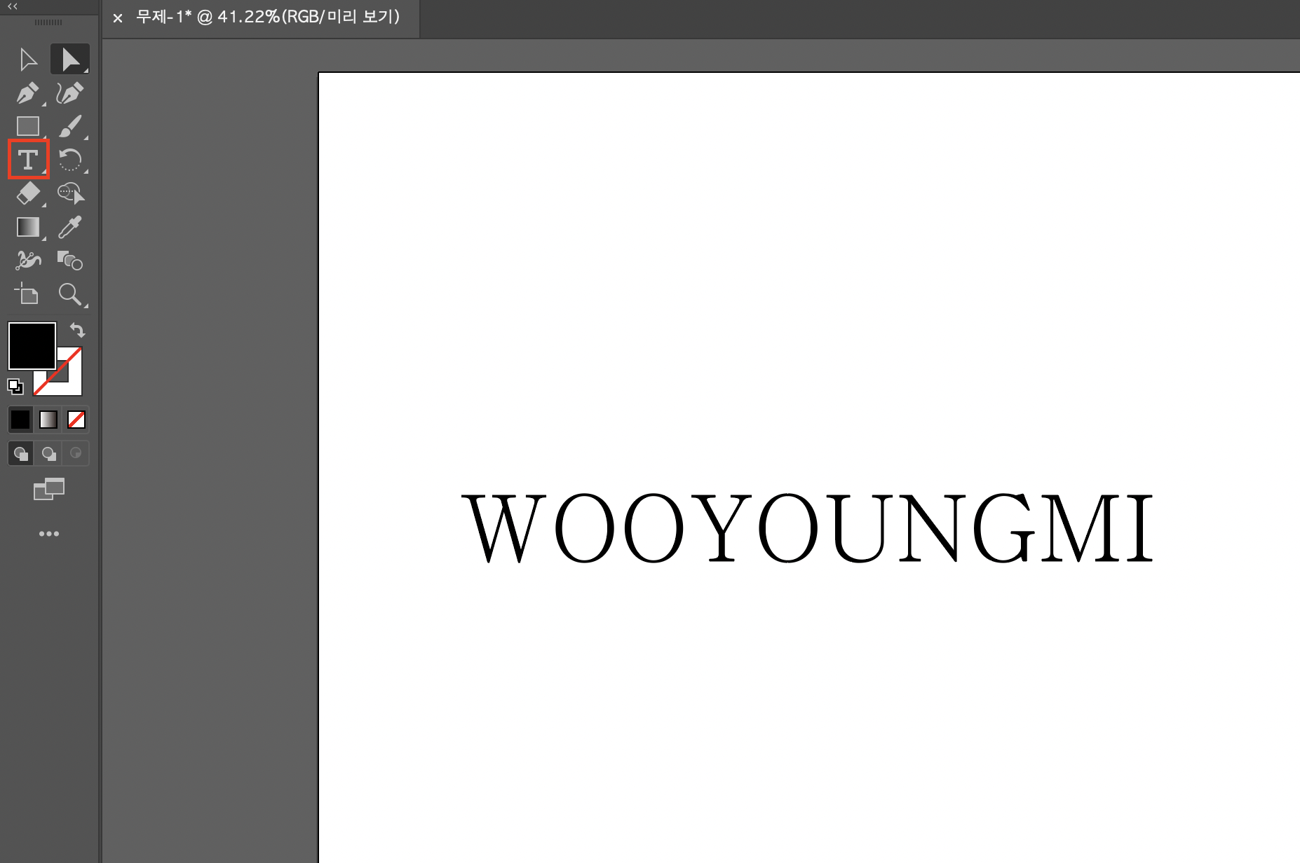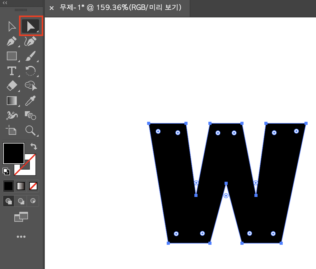 선택도구를 사용하여, 파란색 점들을 마우스로 끌어당기면, 글자를 도형처럼 변형할 수 있습니다.