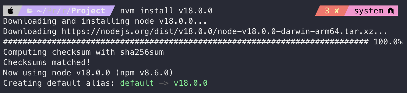 nvm install v18.0.0