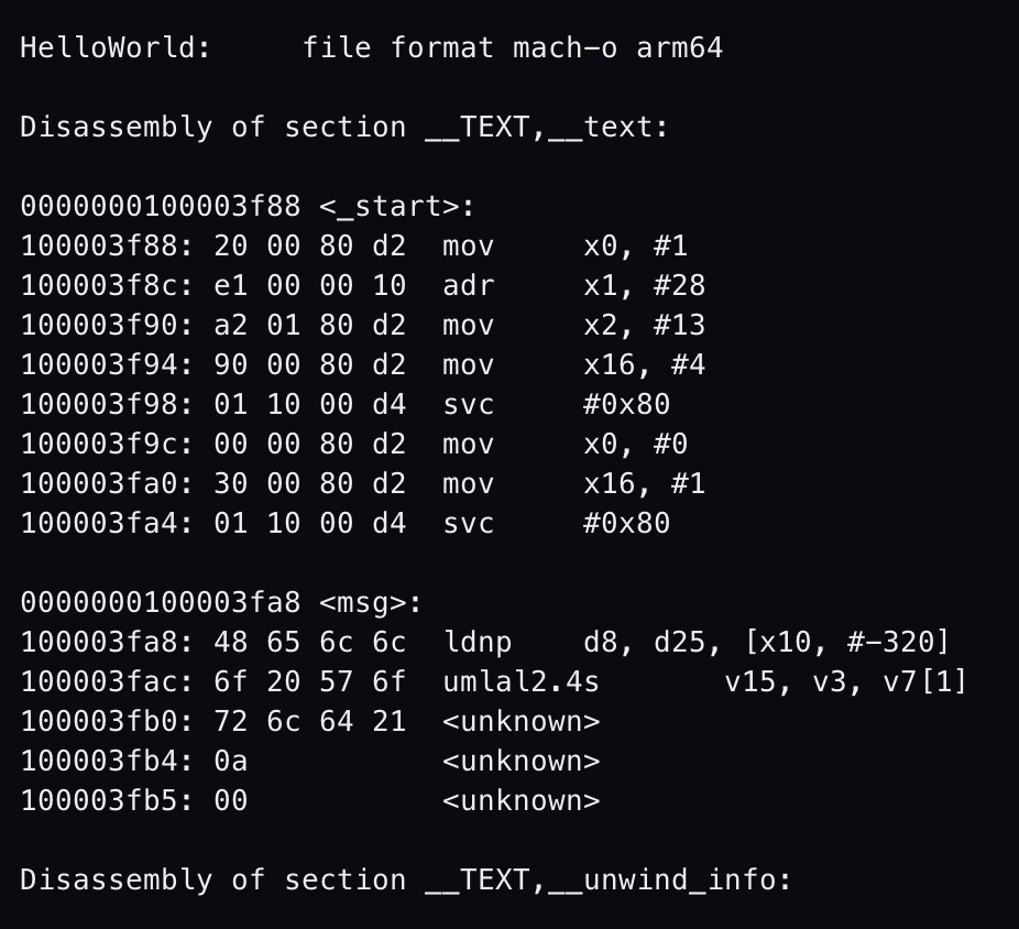 ld -arch arm64 -e _start -o hello hello.o -lSystem -syslibroot `xcrun --show-sdk-path --sdk macosx`