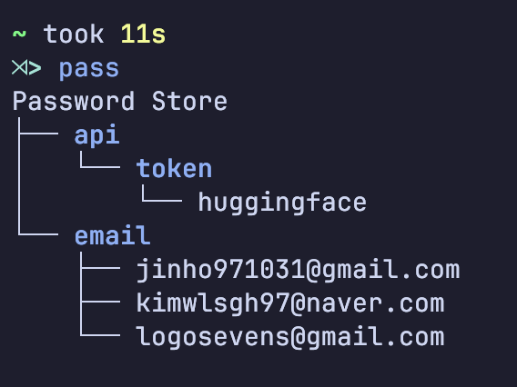 pass show [카테고리]/[이름,제목,이메일,ID]