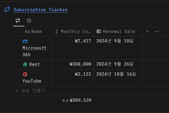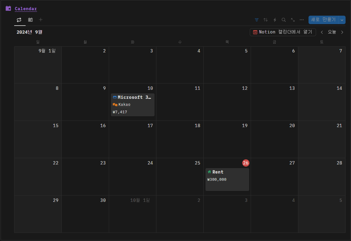 구독한 항목이나, 가계부에 적은 모든 내용을 달력안에서 볼 수 있다.