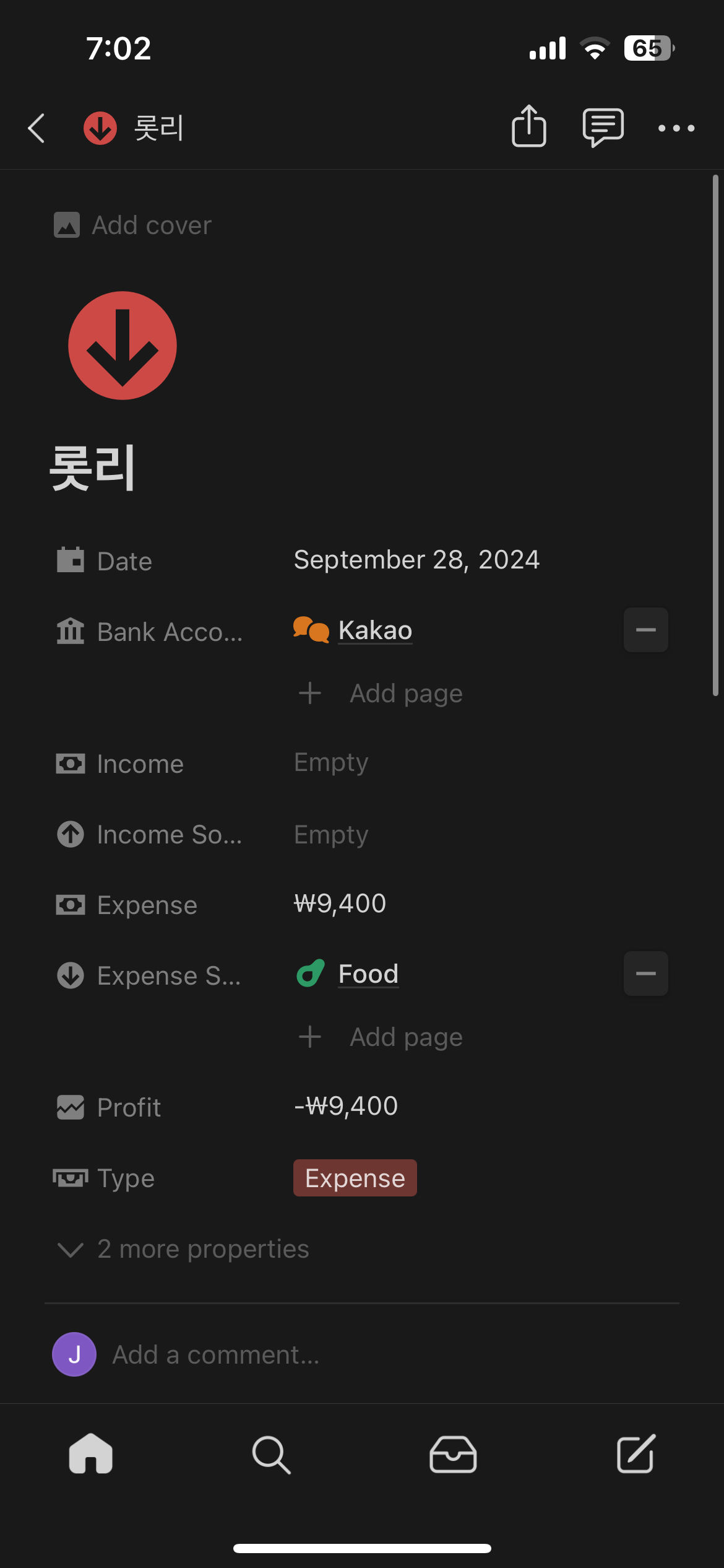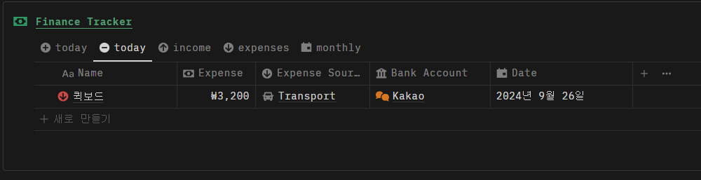 오늘의 소득, 소비를 작성할 수 록 되어있지만,