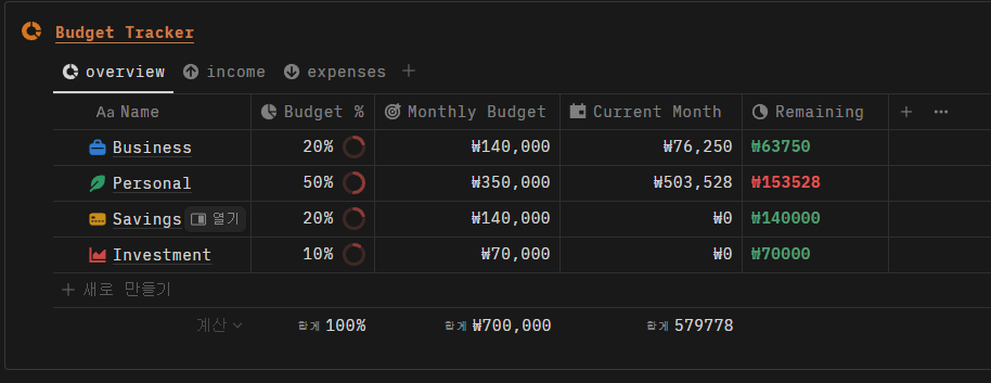 Monthly Budget: 계산된 %에 해당하는 금액 (수정금지)