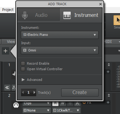 까만색 빈칸에 마우스 우클릭을 하면,가상악기를 추가할 수 있습니다.