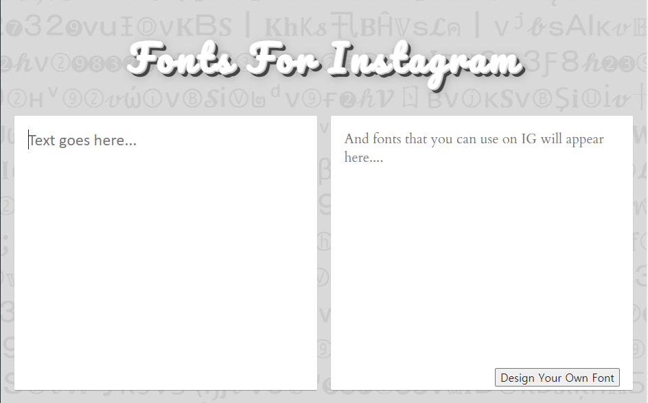 Fonts for Instagram This is a simple generator that you can use to make fonts for Instagram. Simply put your normal text in the first box and fonts for Instagram bio/captions/etc. will appear in the output box with all sorts of cool symbols. You can copy a