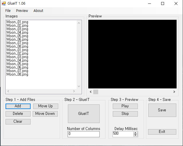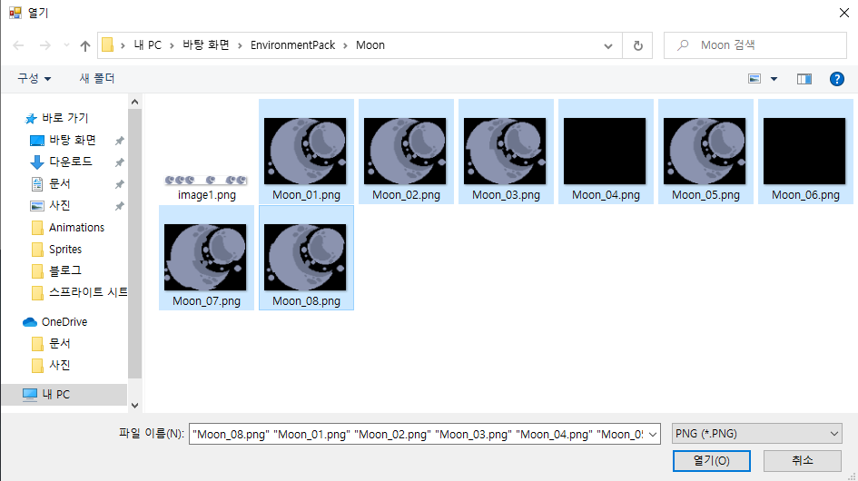 Add : 스프라이트 시트를 만들 여러개의 이미지를 불러옵니다.