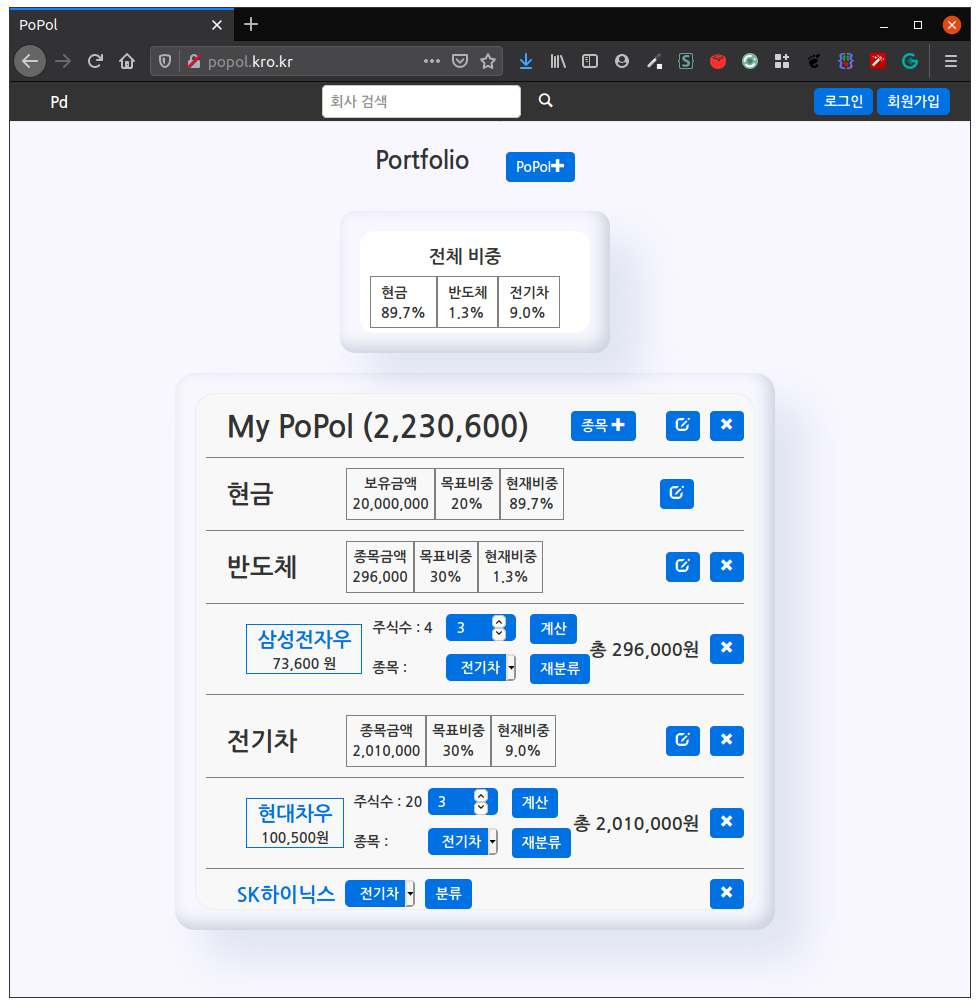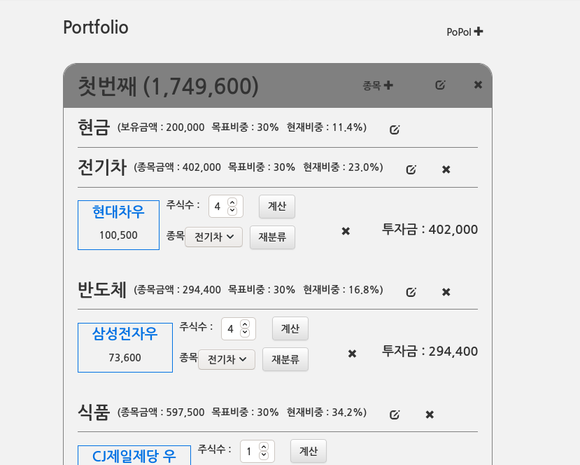 - 종목 비중 확인 박스 추가