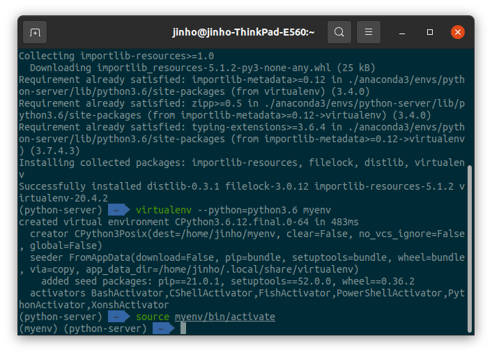 // --python=python3.6 (python3.6 버전으로 환경구성)