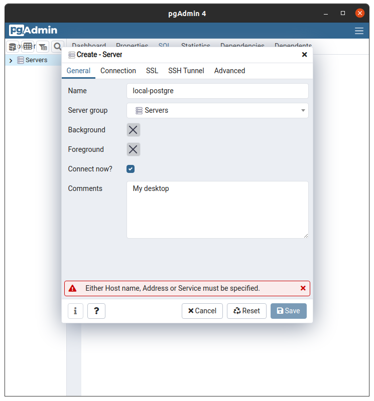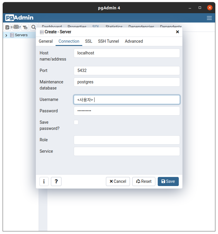 pgAdmin4 Desktop에서, PostgreSQL 연결하기