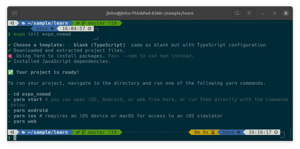 // 현재 폴더 내부에 프로젝트명으로 된 expo 프로젝트 폴더 생성